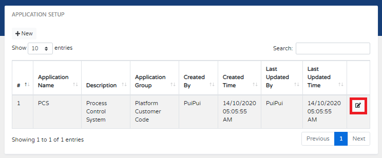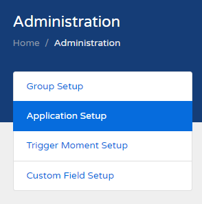 Select on "Application Setup" from Menu to open Application Setup Page.