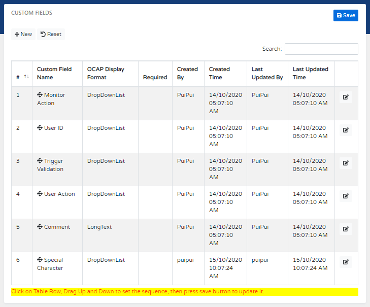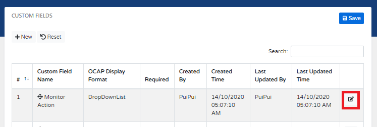 Select on "Custom Field Setup" from Menu to open Custom Field Setup Page.