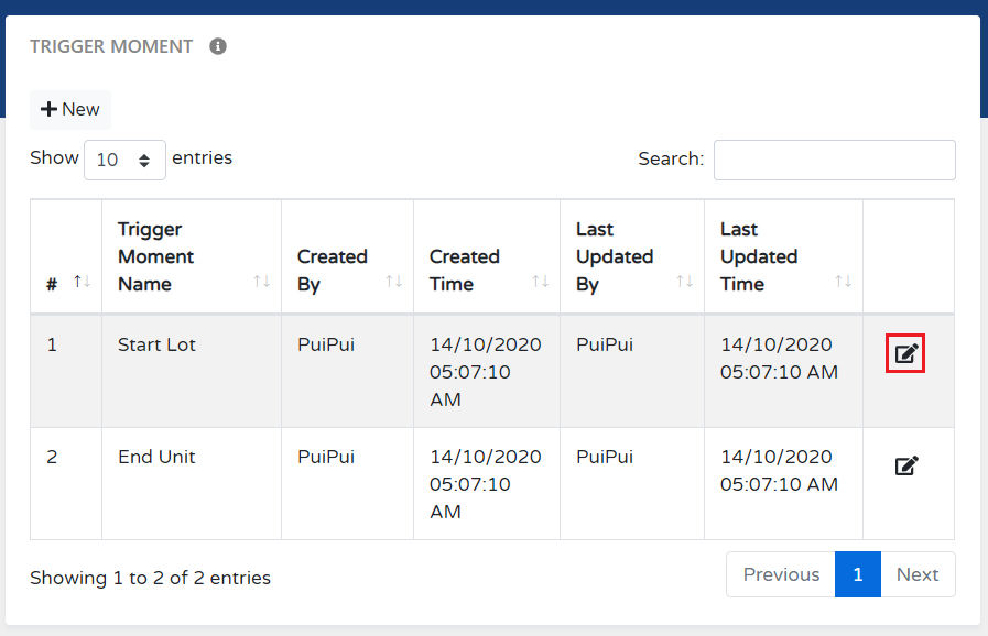 **[Trigger Moment name is NOT allow to change.]- Enter description on the textbox.