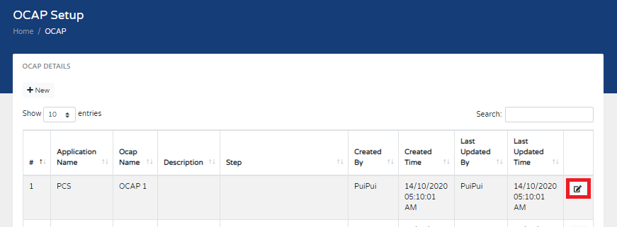 **[OCAP Name is NOT allow to Change.]- Click on Save button to update ocap.