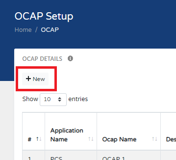 Select on "OCAP" from Navigation Menu to open OCAP Setup Page.